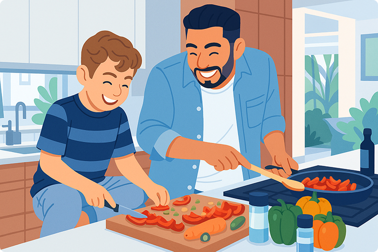 Involucra a tu hijo en la preparación de comidas para que aprenda la importancia de una dieta saludable y disfrute de alimentos variados que benefician su salud visual. Una dieta rica en vitaminas A, C y E , omega-3 y zinc es esencial para el desarrollo de una visión saludable.